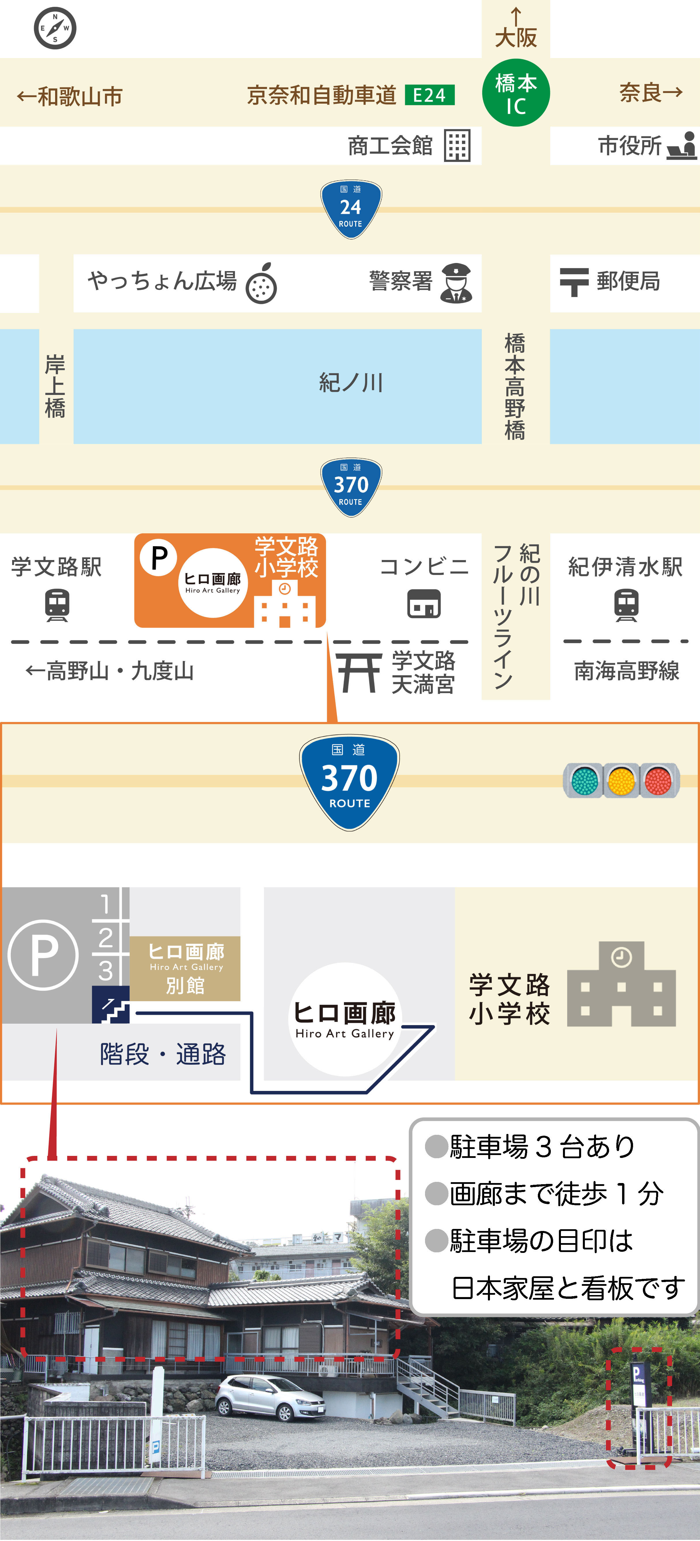 If you come to Hiro Art Gallery by car, please come to Kamuro Elementary School.