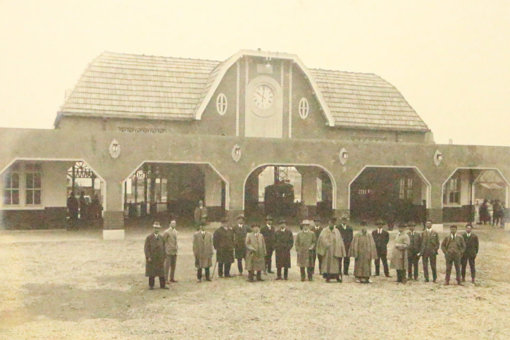 1923年(大正12年)4月、駅舎の前に大阪鉄道株式会社の重役が並んで写っています。この駅舎は現在の近鉄南大阪線の起点である大阪阿部野橋駅で、開業3日前の写真です。94年後の現在、この場所には日本で最も高いビルである「あべのハルカス」がそびえています。近鉄さんにも無い貴重な資料です。そのほか、1897年(明治30年)の河陽鉄道の工事で、イギリス・ロンドンから輸入した橋梁を大和川に架設する際の記念写真には、今では考えられませんが子供を抱いて写真に納まる職人の姿もありました。