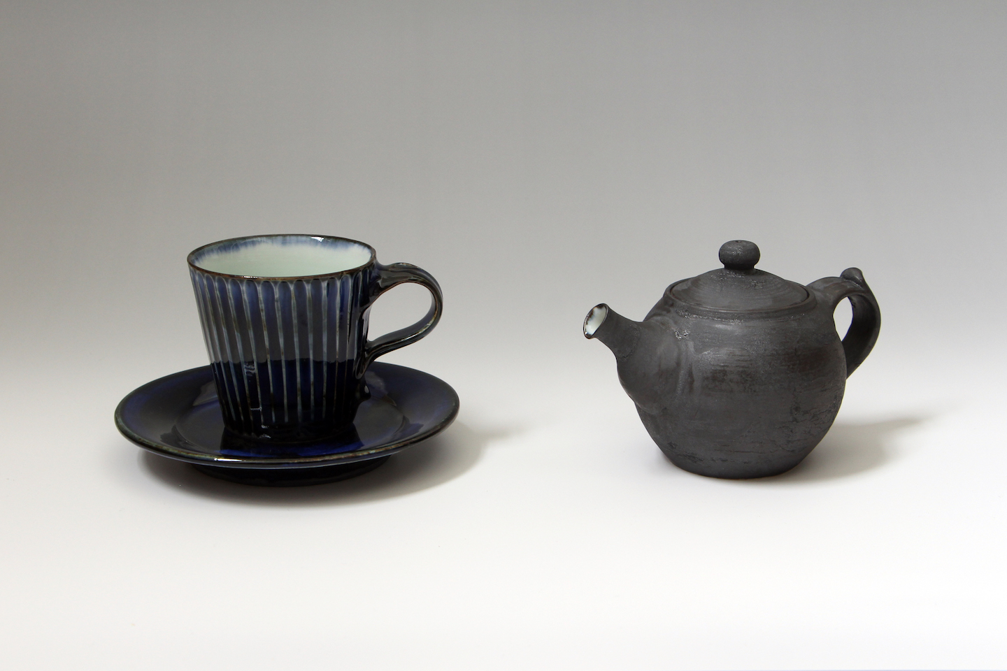 ルリ細しのぎ切立コーヒーC/S・黒磁茶壺