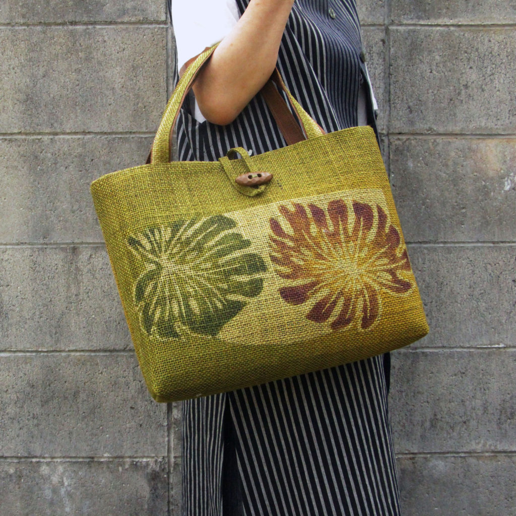 バッグ-モンステラ 技法 :手染め 素材:綿100% サイズ:35 x 11 x 45cm
